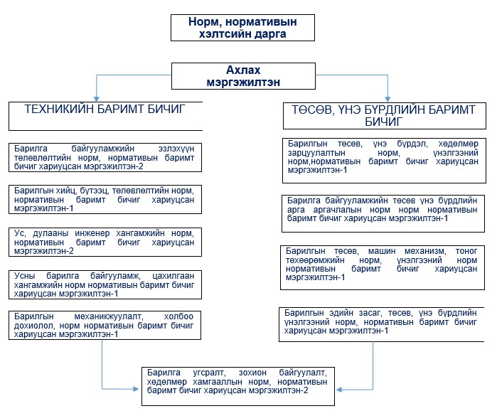 Мөн чанар: Салбарын хэмжээний норм, нормативын баримт бичгийг боловсронгуй болгосноор салбарын бүтээгдэхүүний чанарыг дээшлүүлж, хэрэглэгчдийн эрүүл аюулгүй амьдрах нөхцөлийг хангах, барилга байгууламжийн техникийн бодлого, хөтөлбөр, төсөл арга хэмжээний төлөвлөлт, техникийн баримт бичиг боловсруулан хэрэгжилтийн зохицуулалт, зөвлөмж, удирдлага, дэмжлэг мэдээллээр хангахад оршино.